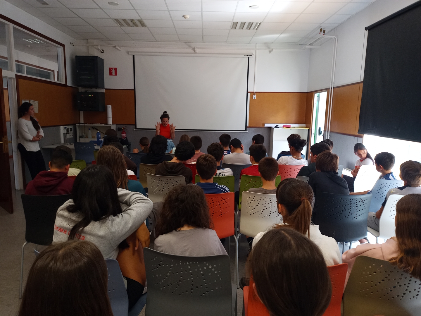 Ane Labaka, escritora y bertsolari de Lasarte, ha estado entre nosotros para hablar sobre su obra narrativa Murmur. Aunque ha venido con motivo de esta novela gráfica que hemos trabajado en 1º de ESO, su aportación como escritora, creadora y mujer comprometida ha sido muy enriquecedora para todas las personas que nos hemos reunido en el aula Moru.