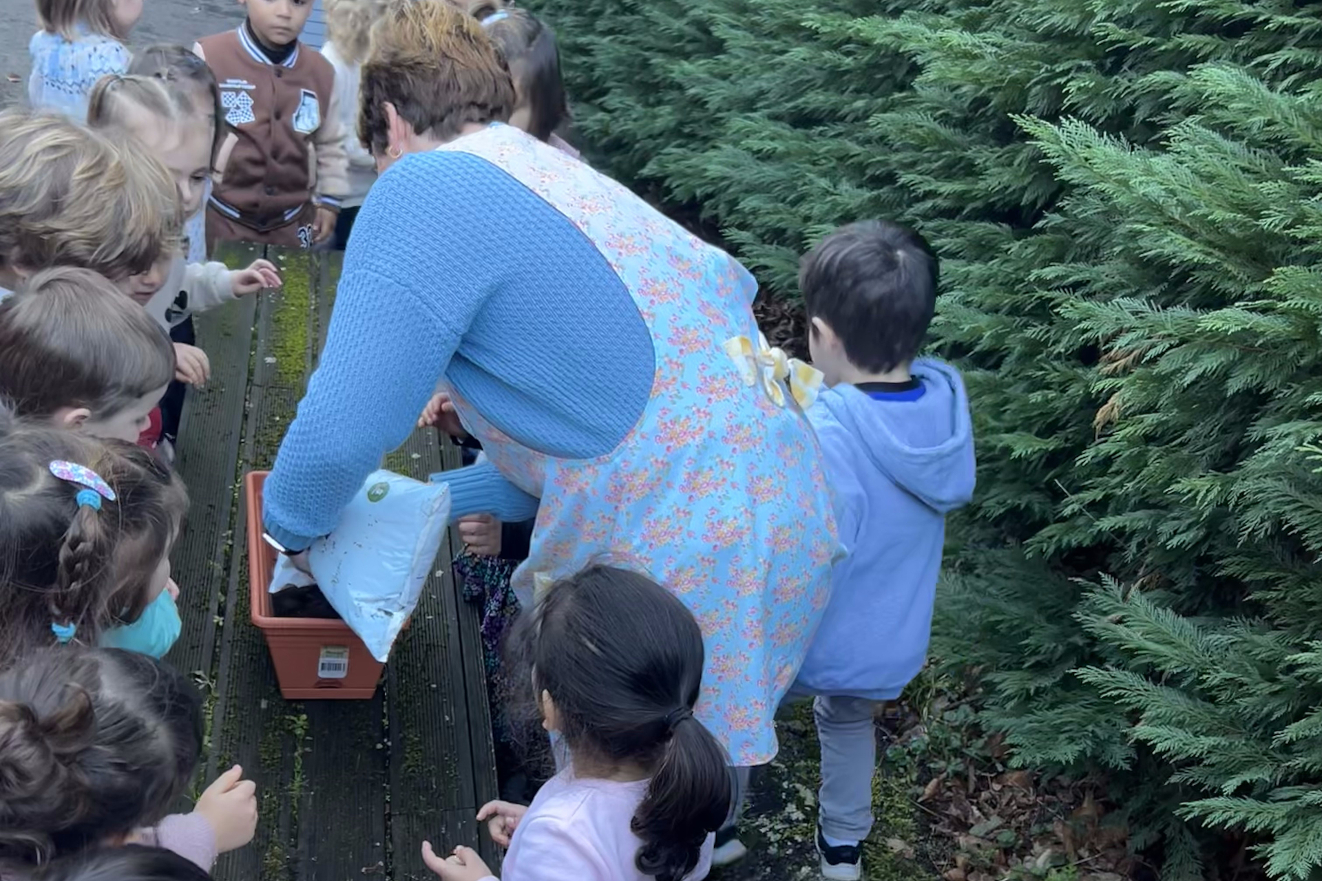 HH 3ko ikasleek perrexila nola landatzen den (prozesua) ikasi dute gelan, eta ondoren praktikan jartzeko aukera izan dute ikastolako baratzean. Gelan azalpena jaso ostean, baratzera igo dira.